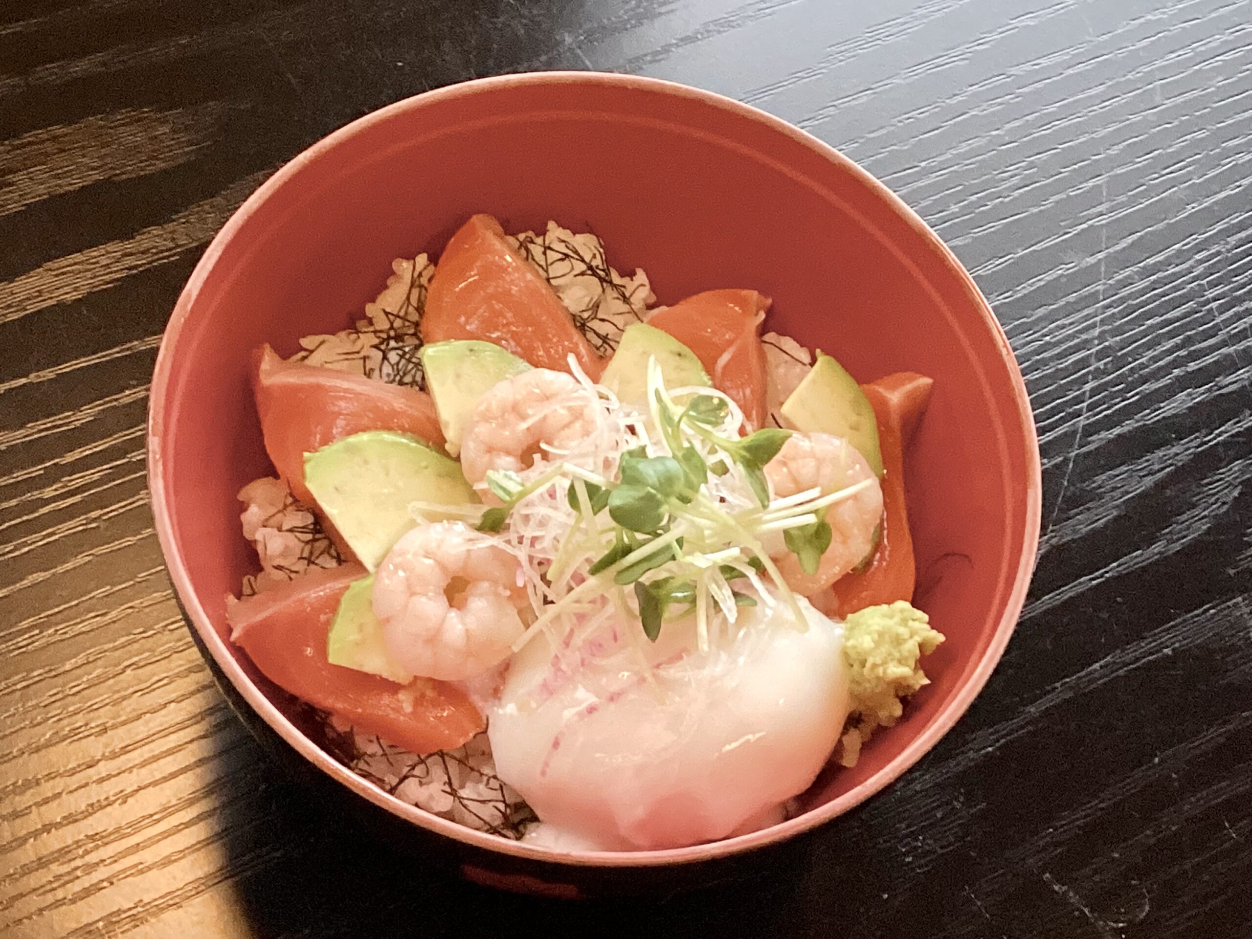 4月 06 2026 今月の丼 春サーモン丼 四月「春サーモン丼」・・・1,500円 酢飯にチリ産特上サーモン、海老、アボカド、大根、貝割れ菜、刻み玉ねぎ、温玉。 胡麻ソースを添えて。 今月の丼 春の行楽弁当